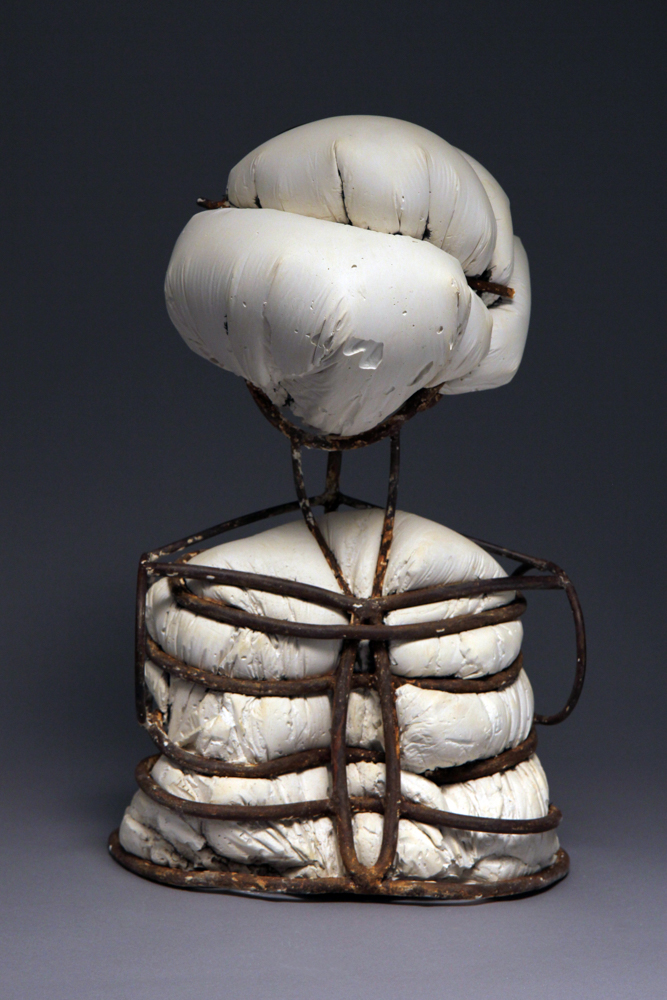 Self-Contained (2014); steel and plaster; 24 x 17 x 10 inches